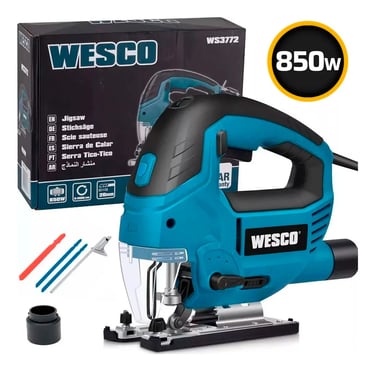 A Wesco WS3772 é a escolha para quem precisa de força bruta sem abrir mão do controle. Com impressionantes 850W, esta serra enfrenta qualquer desafio, desde madeiras densas até metais mais grossos.